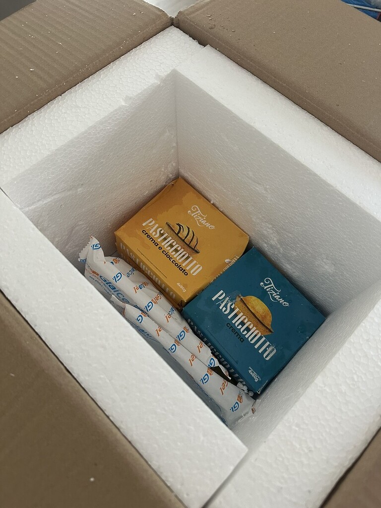 Pacco gestito molto bene, con numerosi sacchetti del ghiaccio per garantire la conservazione del prodotto durante la spedizione.